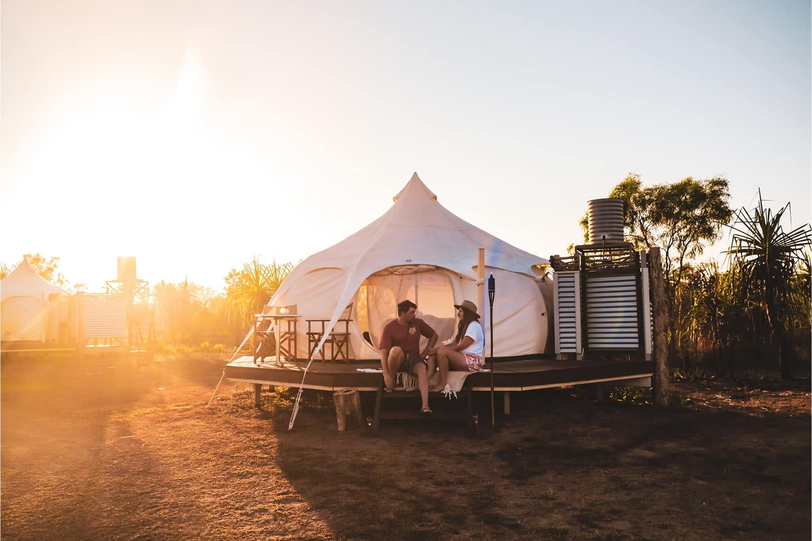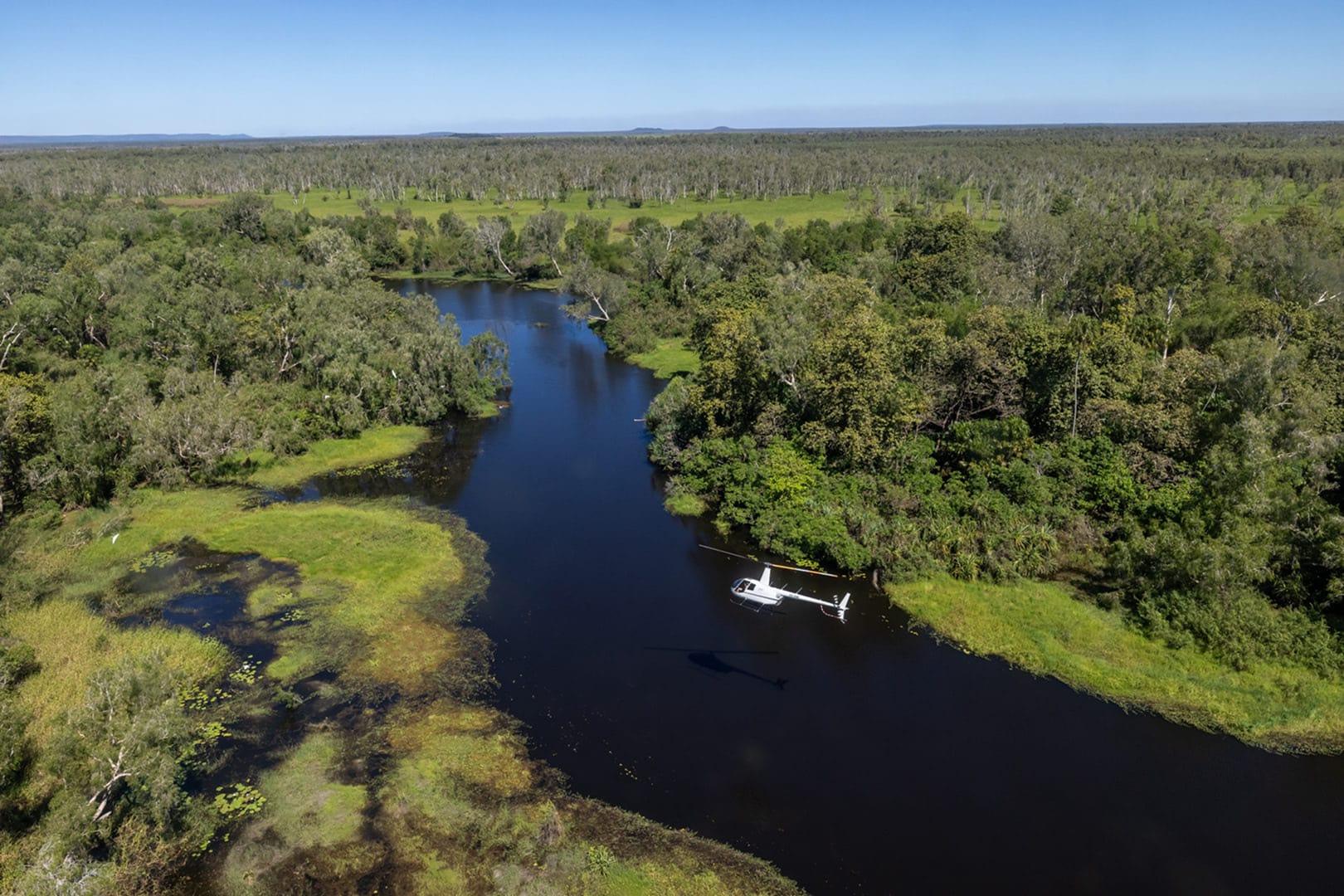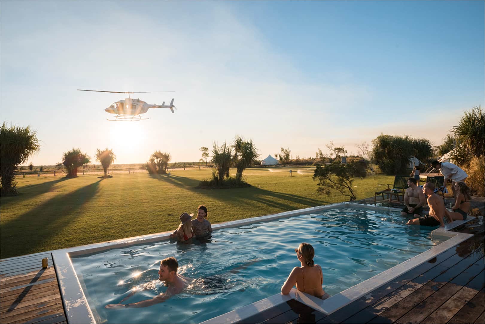 Depart for the Top End Safari Camp Overnight Tour with airboats, croc encounters, scenic helicopter flights, and glamping.