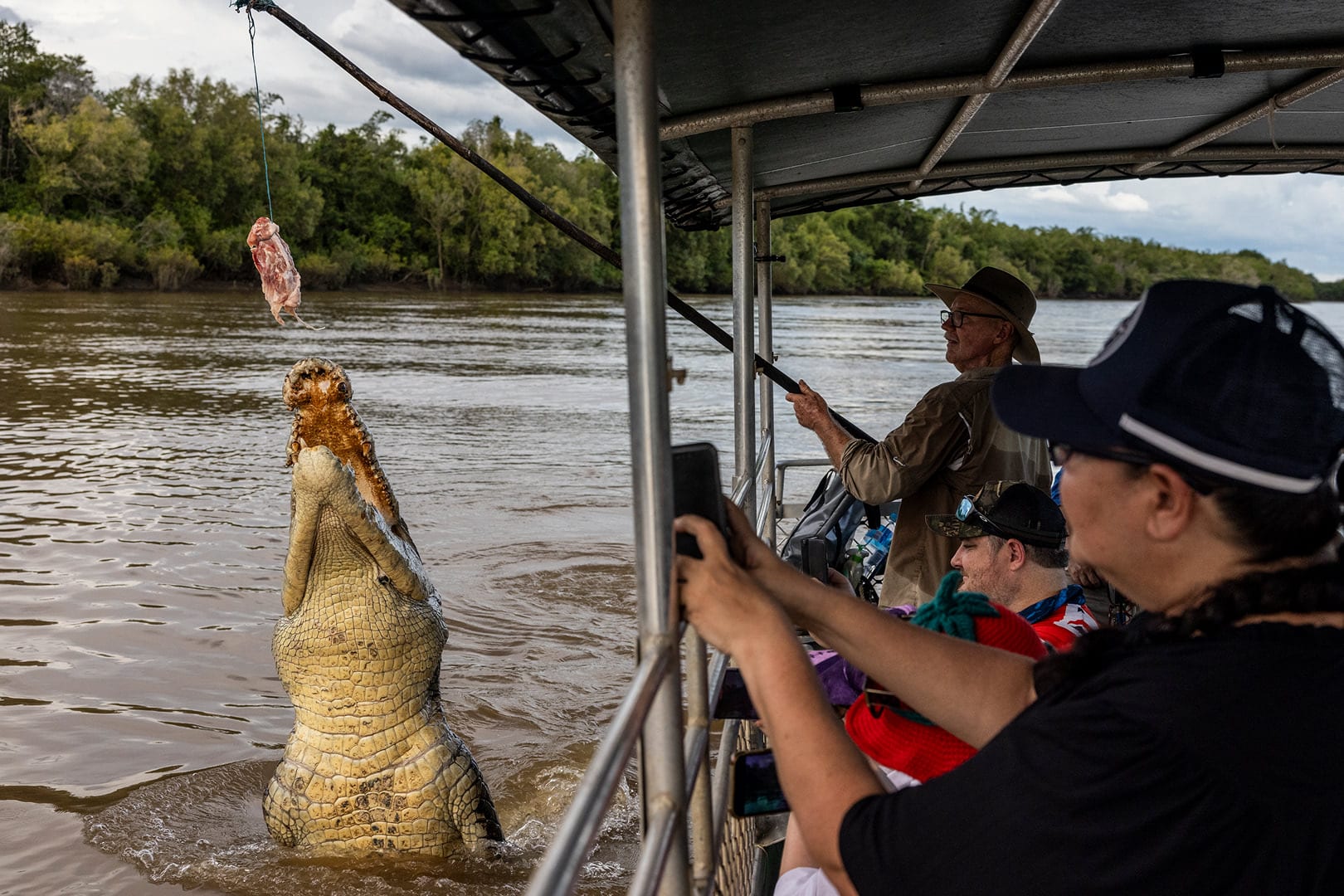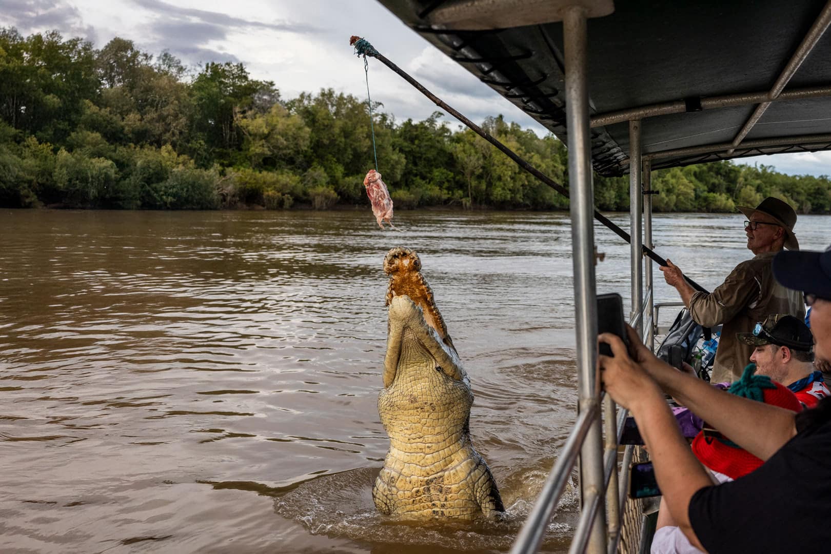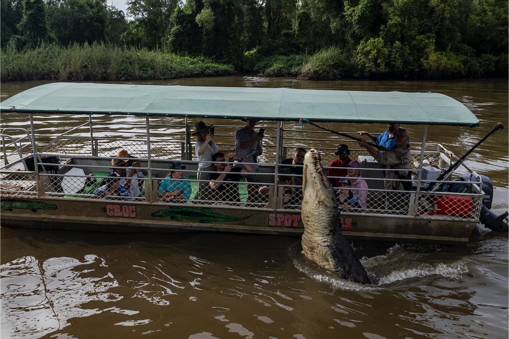 Cruise the Adelaide River on a Jumping Croc Cruise and watch crocs leap from the water just meters away.